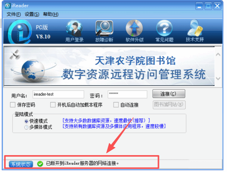 图书馆已正式购买iReader 远程访问系统,现已调试完毕,开始正式面向我校师生使用。远程访问帐号仅供自己检索下载使用,不要将账户提供给他人或其他途径使用,避免因批量下载或恶意下载带来不必要的版权、知识产权纠纷。