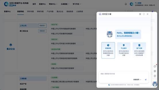 (3)若在学术论文、研究报告等学术成果中使用了来自企研·社科大数据平台的数据,请在成果中引用“数据来源:企研·社科大数据平台”,或以英文引用“Data source: Qiyan China Big Data Platform for Social-Science(CBDPS)”。